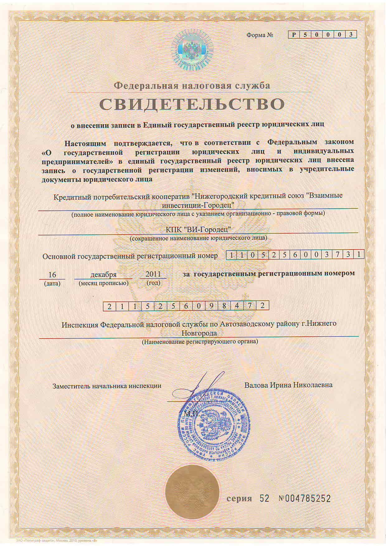 ОГРН: 1105256003731
